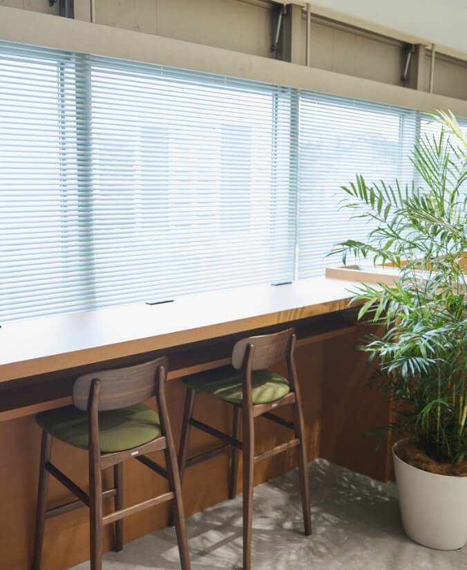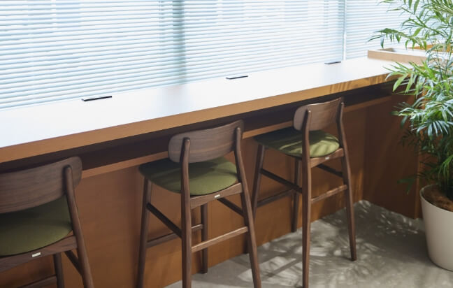 執務室の一部にダークブラウンを取り入れ、心を落ち着きながら業務ができる環境を作りました。コーポレートカラーのグリーンがリフレッシュ効果も引き出してくれます。